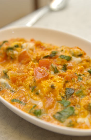 材料:トマト、セロリ、塩、胡椒、オリーブオイル、バター、卵、ピザソース、ガーリックパウダー、粉チーズ