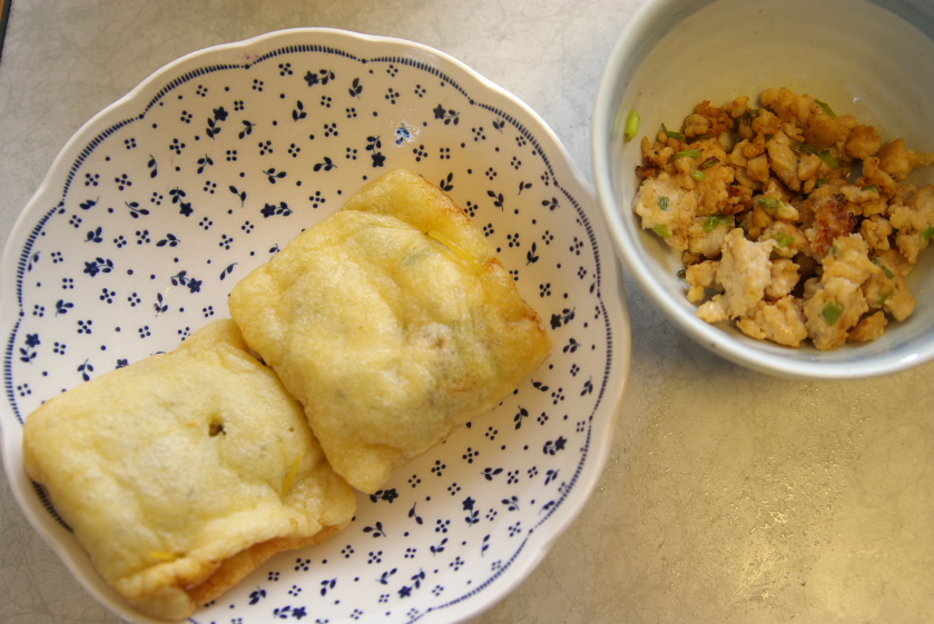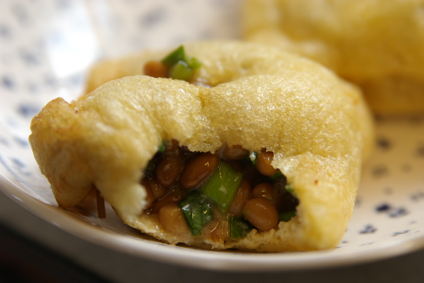 あげの中に納豆と刻みネギを入れて揚げたのと、