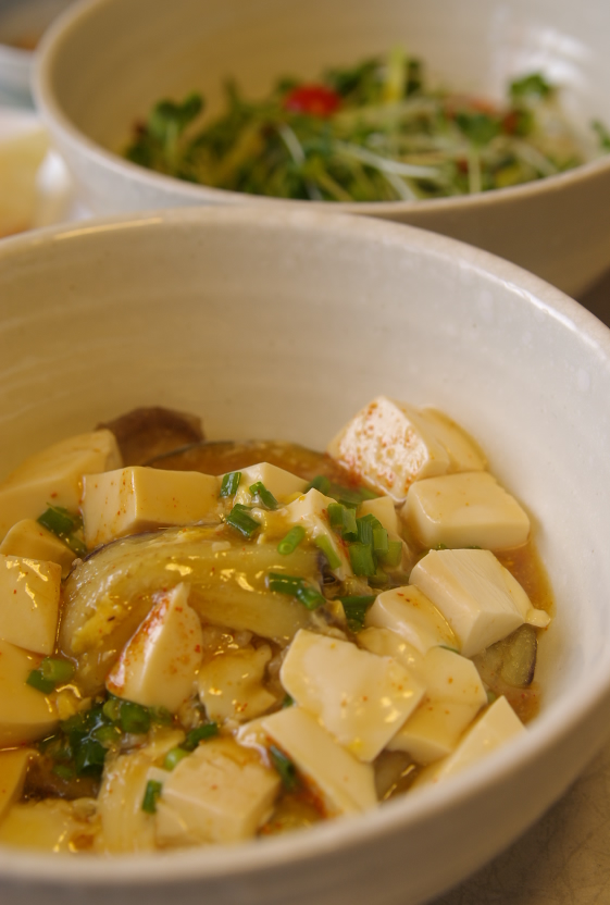 揚げ野菜に豆腐の出汁餡をかけた丼ガゴ。