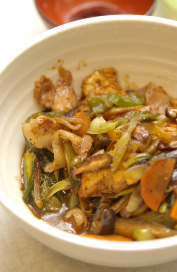 材料:人参、茄子、ししとう、しいたけ、湯葉、ごま油、昆布出汁、片栗粉、水