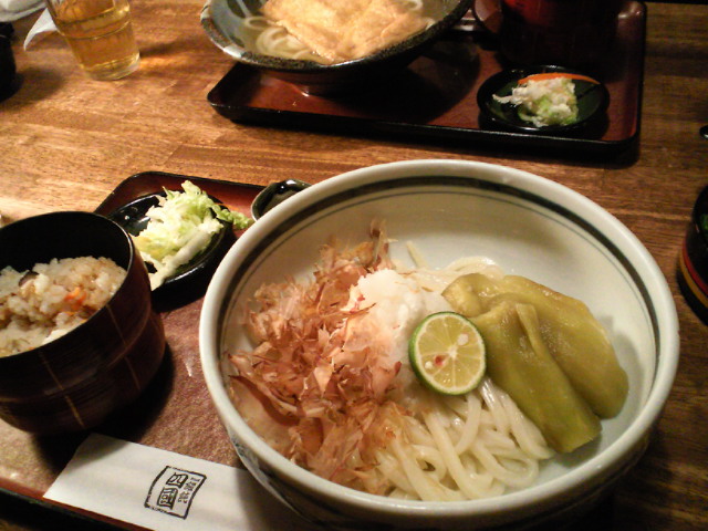 なすの生醤油うどん定食ガゴ。
