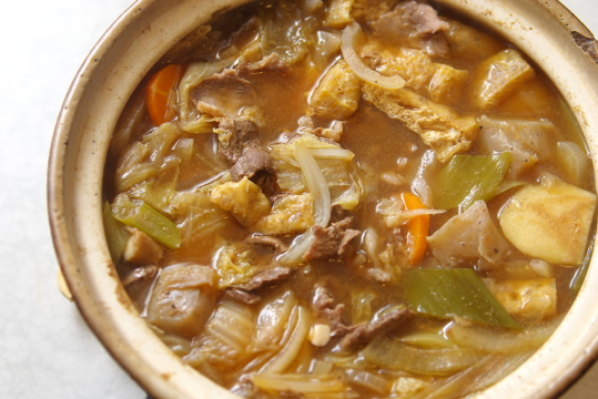 材料:豚ミンチ、玉葱、ブロッコリー、ぶなしめじ、かぼちゃ、オリーブオイル、マジックソルト、固形ブイヨン、クリームチーズ、パスタのためのオイルソース、パスタ、塩