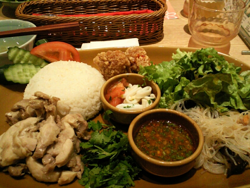 タイのチキンライスでお米はチキンスープで炊いてあるガゴ。