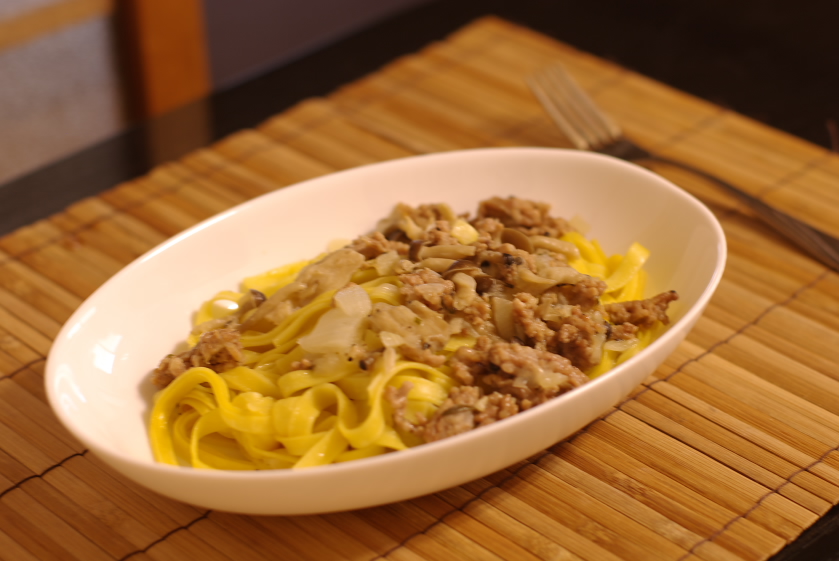 3.すりおろし生姜と鶏ミンチを入れ中火で軽く炒める。