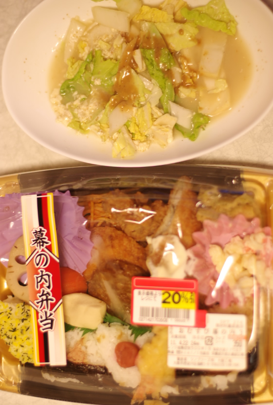 【ピヨちゃんんのお弁当と昨日の残りの豚しゃぶサラダ】