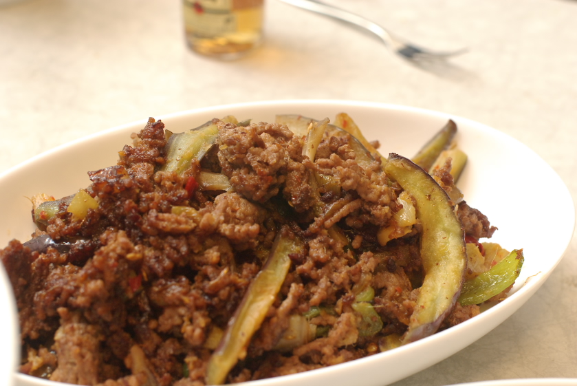 材料:牛豚合挽きミンチ、ナス、ピーマン、まいたけ、にんにく、生姜、白ネギ、赤唐辛子