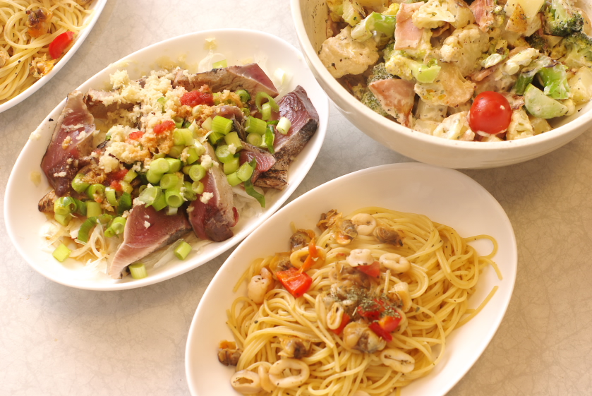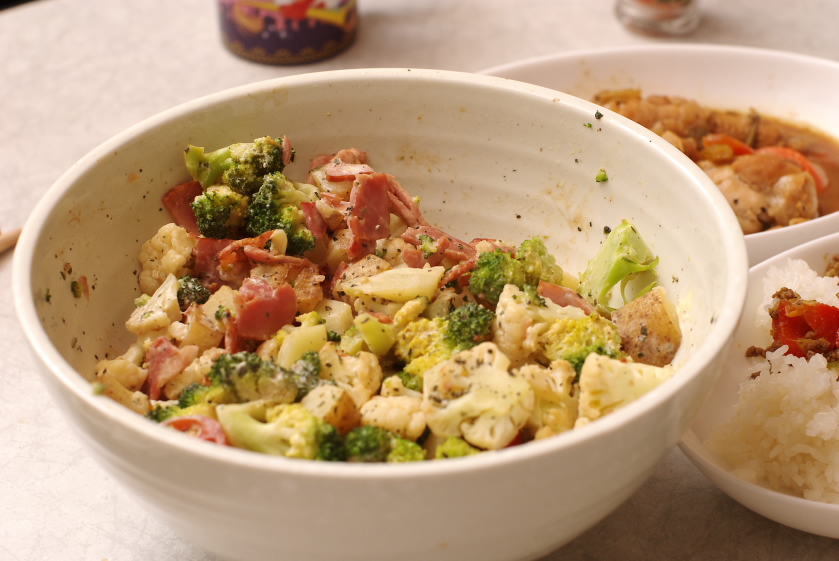 ・中央のどんぶり:焼野菜サラダ