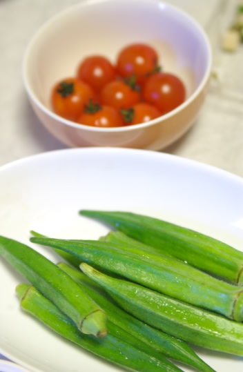 プチトマトと『のら』さんで買ってきたオクラぴよ☆