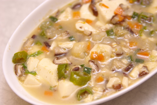材料:豆腐、ししとう、しいたけ、人参、ごま油、片栗粉、水、昆布出汁、柚胡椒、柚七味、山椒、生姜、醤油