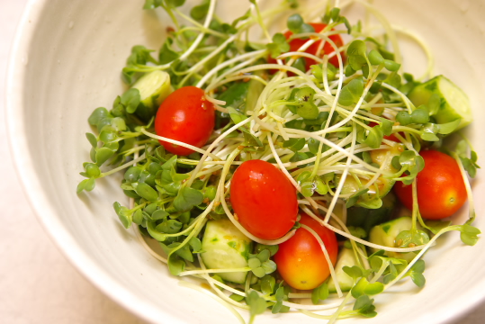 材料:プチトマト、かいわれ、きゅうり、ポンズ