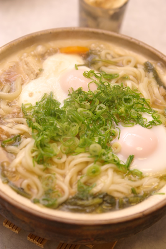 材料:うどん、めんつゆ、きくな、椎茸、人参、白ネギ、生姜、大葉、鶏ミンチ、醤油、塩、酒、焼き豆腐、味付きあげ、卵、万能ネギ