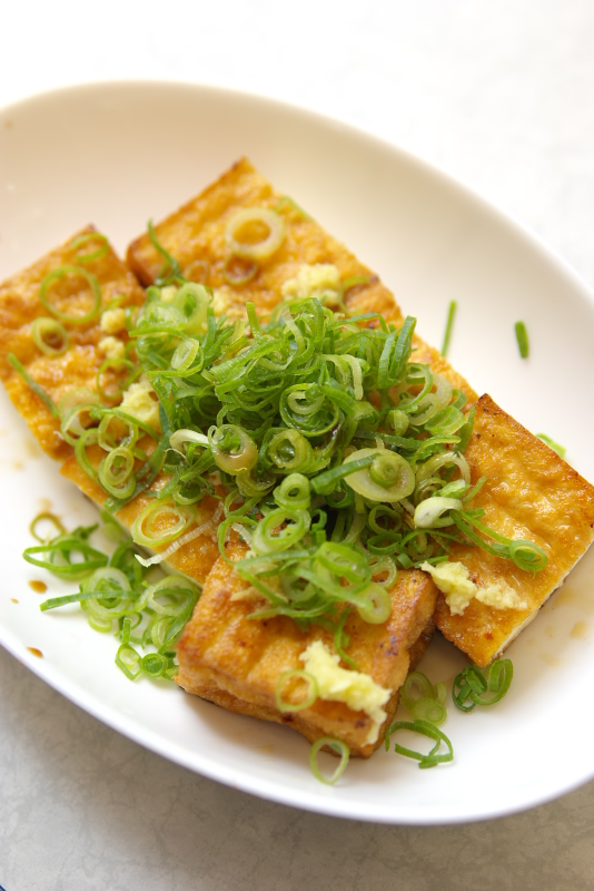 材料:厚揚げ、ごま油、万能ネギ、生姜、醤油