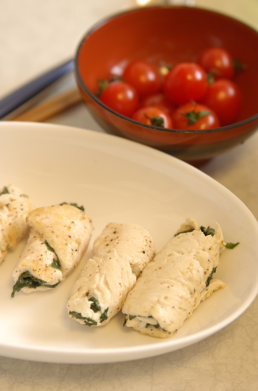 手前:ささみと大葉の炒め物(材料:ささみ、大葉、塩、胡椒、ごま油)