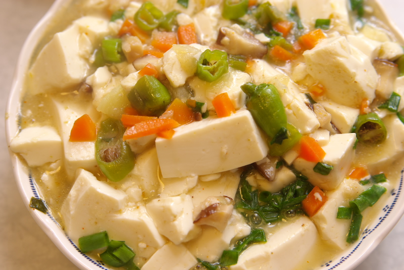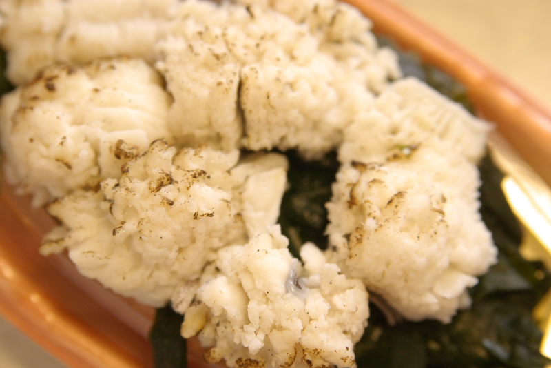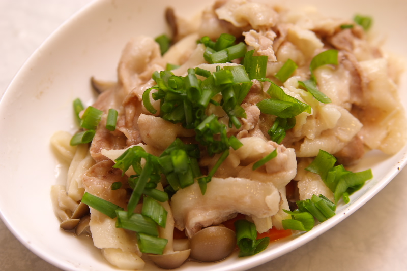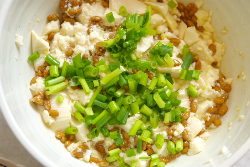 右:冷奴(豆腐、万能ネギ、生姜、湯豆腐のたれ)