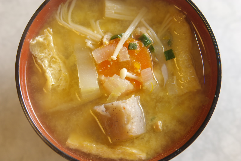 材料:せせり、白菜、人参、ごぼう、大根、しめじ、かぼちゃ、万能ネギ、玉葱、こんにゃく、あげ、昆布出汁、味噌