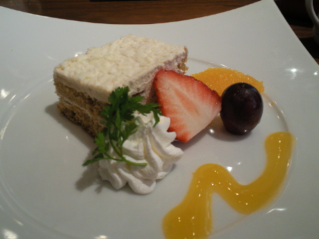 【チーズケーキ、ベリーソース添え】
