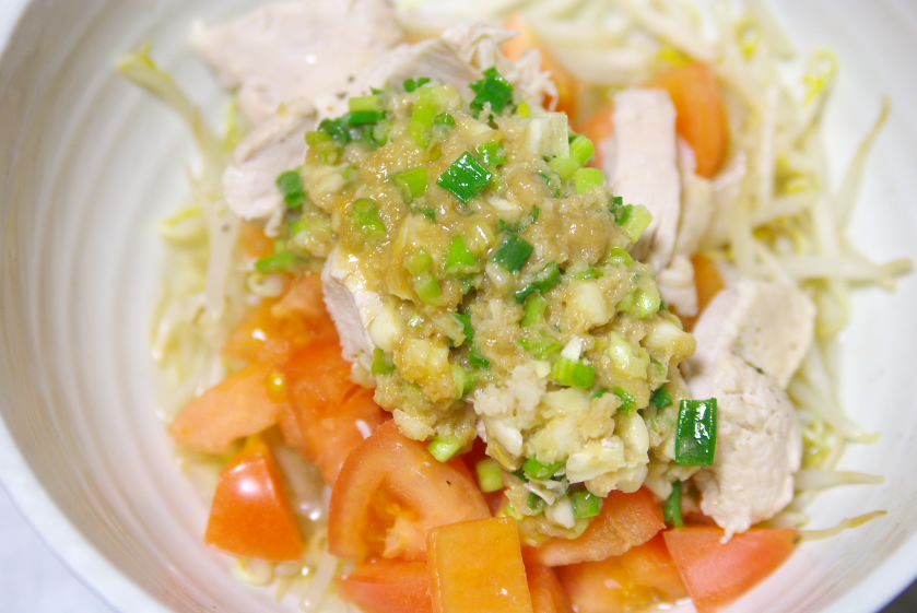 3.香味ネギを小口切りにして器に取っておく。