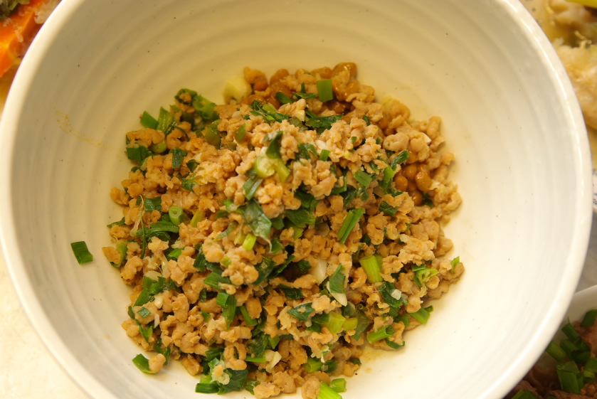 大豆のお肉(ミンチ)で作ったスタミナ納豆ガゴ。