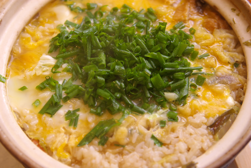 7.砂糖を振り少し煮たら火を止め、白ネギと好みで七味を振ったら出来上がり。