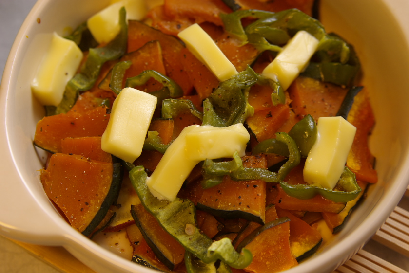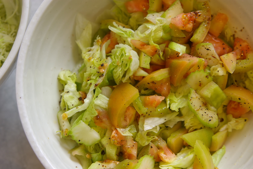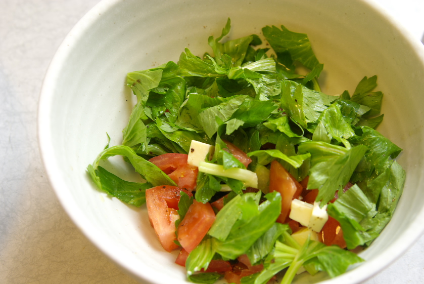 材料:トマト、セロリ、カマンベールチーズ、オリーブオイル、黒胡椒、マジックソルト