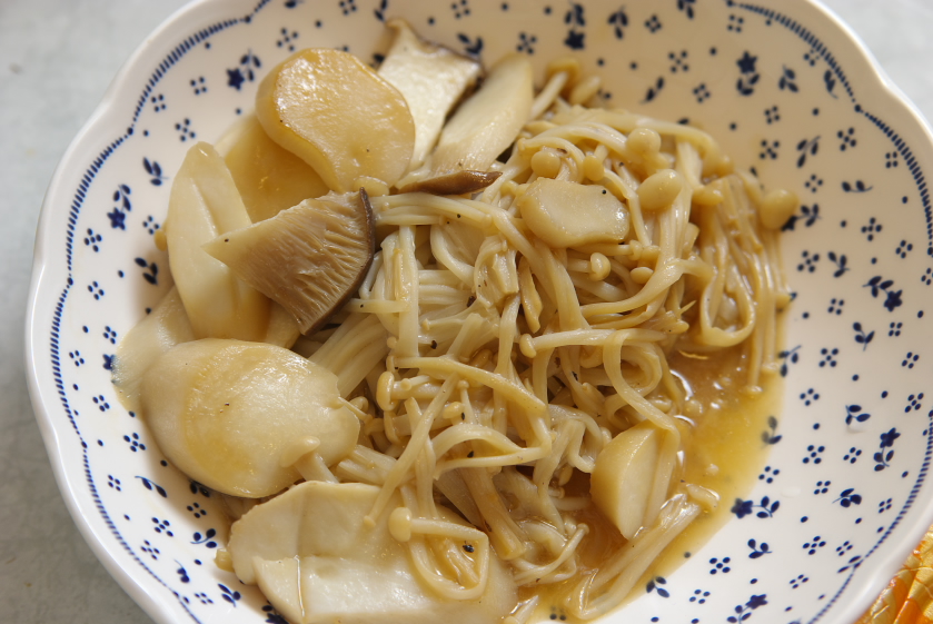 材料:えのき、えりんぎ、オリーブオイル、マジックソルト、胡椒、醤油