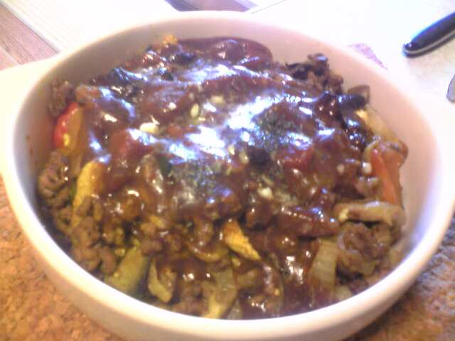 材料:合挽きミンチ、玉葱、人参、かぼちゃ、ぶなしめじ、まいたけ、スナックえんどう、なす、プチトマト、ヤングコーン、にんにく、レトルトカレー1袋、粉チーズ、粉末オレガノ、粉末バジル、オリーブオイル、バター、塩、胡椒、白ワイン、クリームチーズ