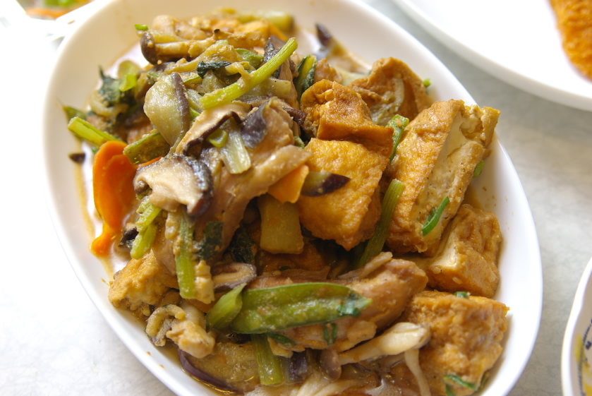 【鶏もも肉と厚揚げの胡麻味噌炒め】