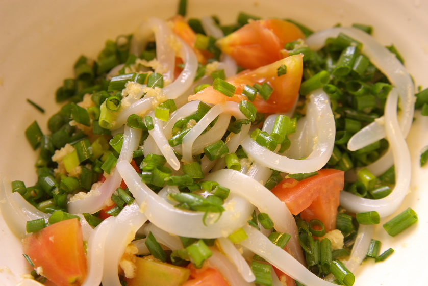 3.赤唐辛子と土佐酢を加えて冷蔵庫で寝かして出来上がり。
