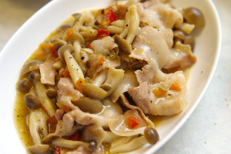 豚肉ときのこの洋風ソテーがご。ここのポークソテーの素を使ったガゴ。